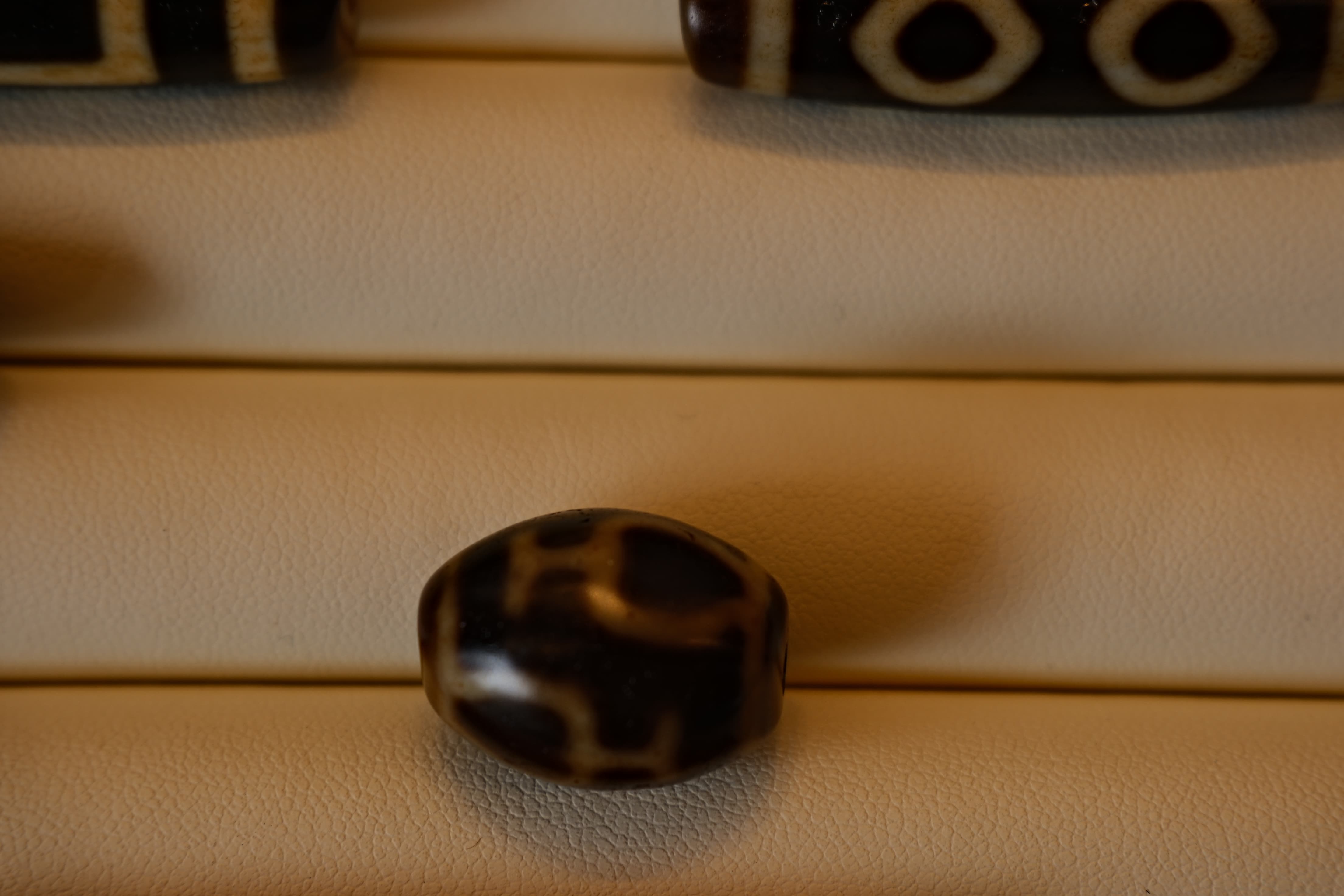 A classic Dzi bead certified and circulated in Taiwan, crafted using traditional etching techniques. It features clear and distinct patterns with a warm, dense texture. Believed to attract wealth and prosperity, provide protection and ward off negative energy, calm the mind, and enhance one's aura. Wearing it daily is thought to boost financial luck, while using it during practice or mantra chanting may deepen spiritual insight. It also serves as a meaningful gift to promote peace and foster connections.