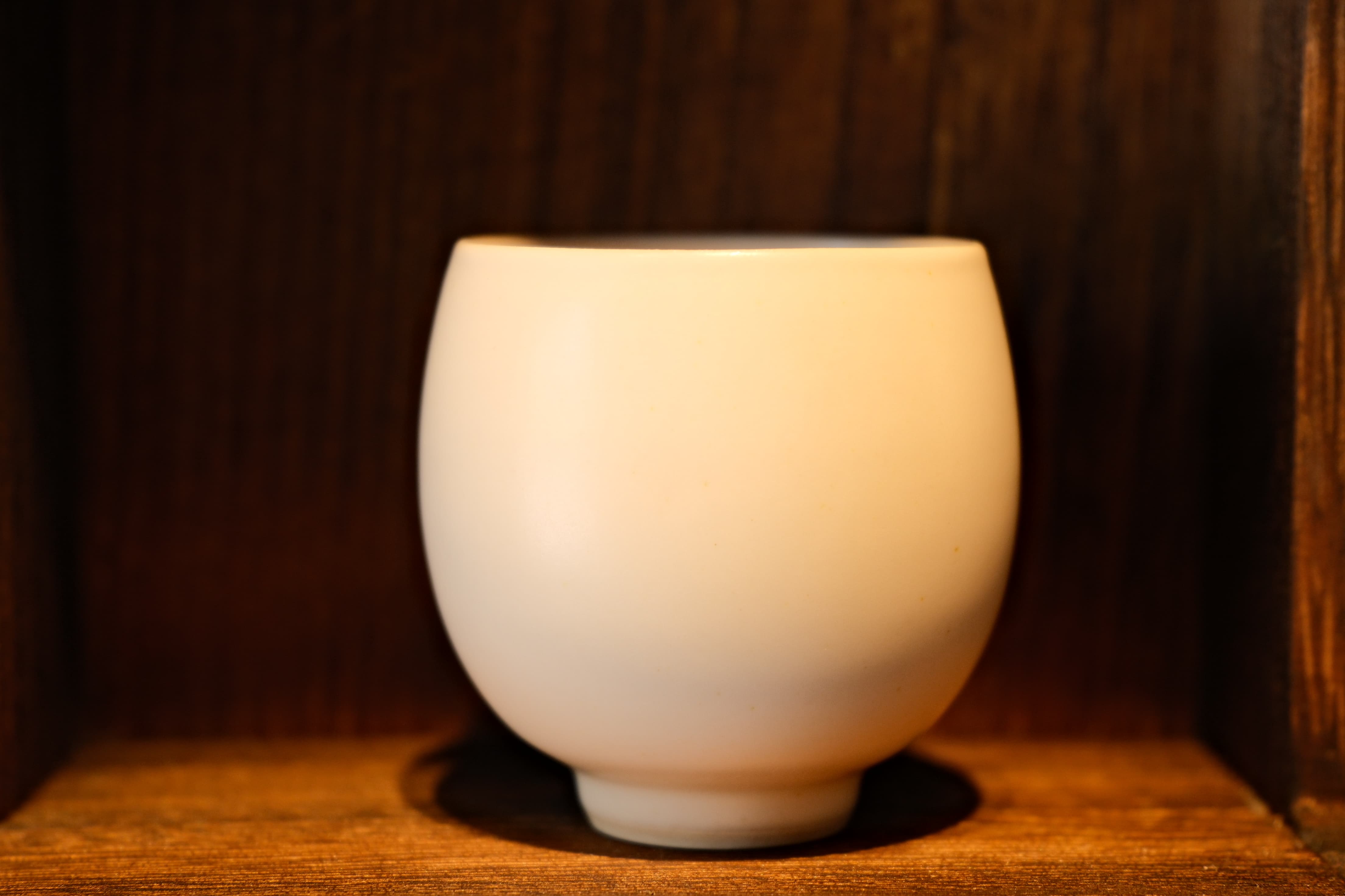 This cup is a Japanese vintage white-glazed converging-rim cup. Its form is rounded and understated, with a pure and gentle glaze. The body features classical traditional character inscriptions, reflecting a fusion of Japanese minimalist aesthetics and traditional craftsmanship. The converging rim design helps concentrate tea aromas, making it ideal for brewing fragrant teas (such as oolong or roasted teas) to enhance their richness.