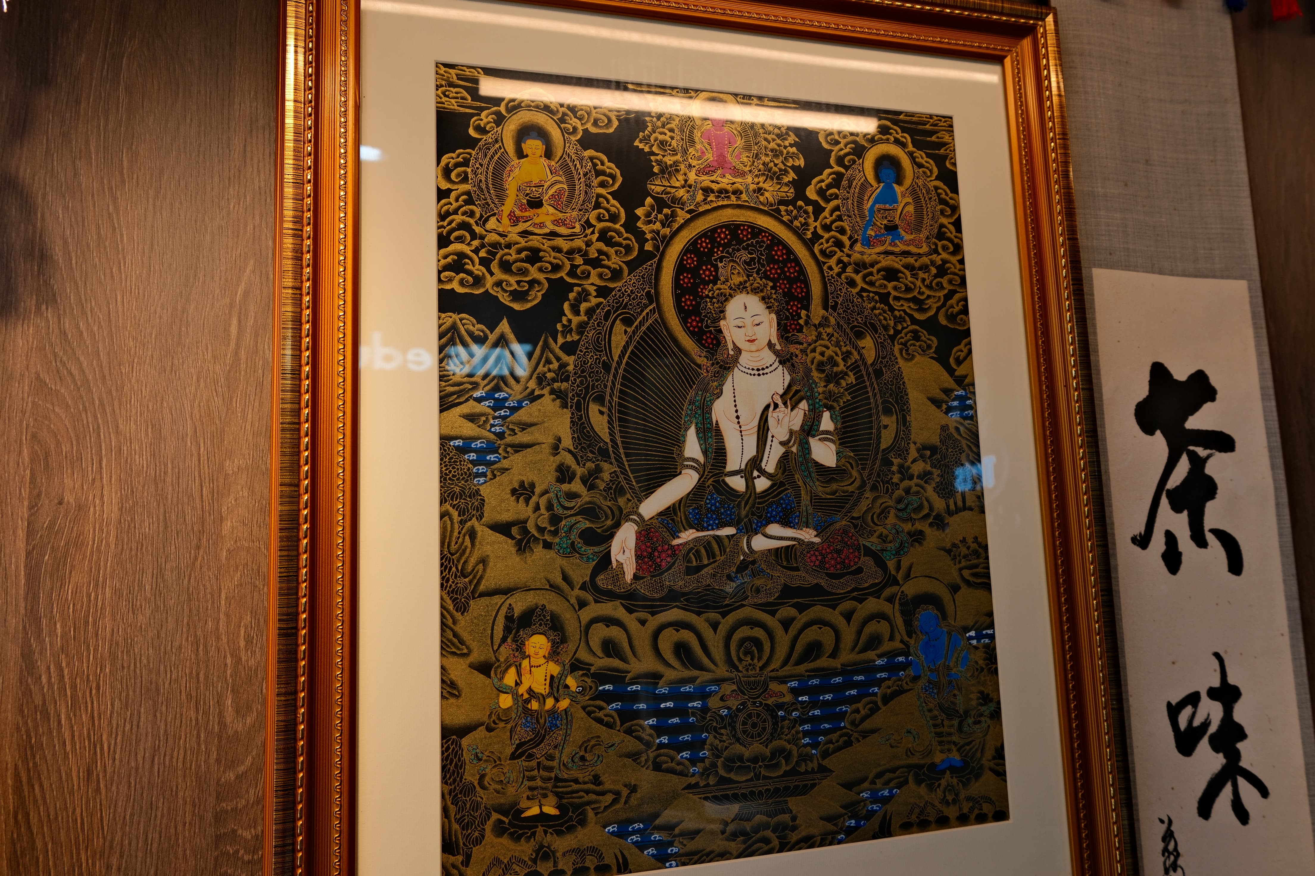 * Hand-applied Gold Lines—Accented with gold powder, featuring lavish robes and ornaments; the image emanates solemnity as light plays upon its surface.