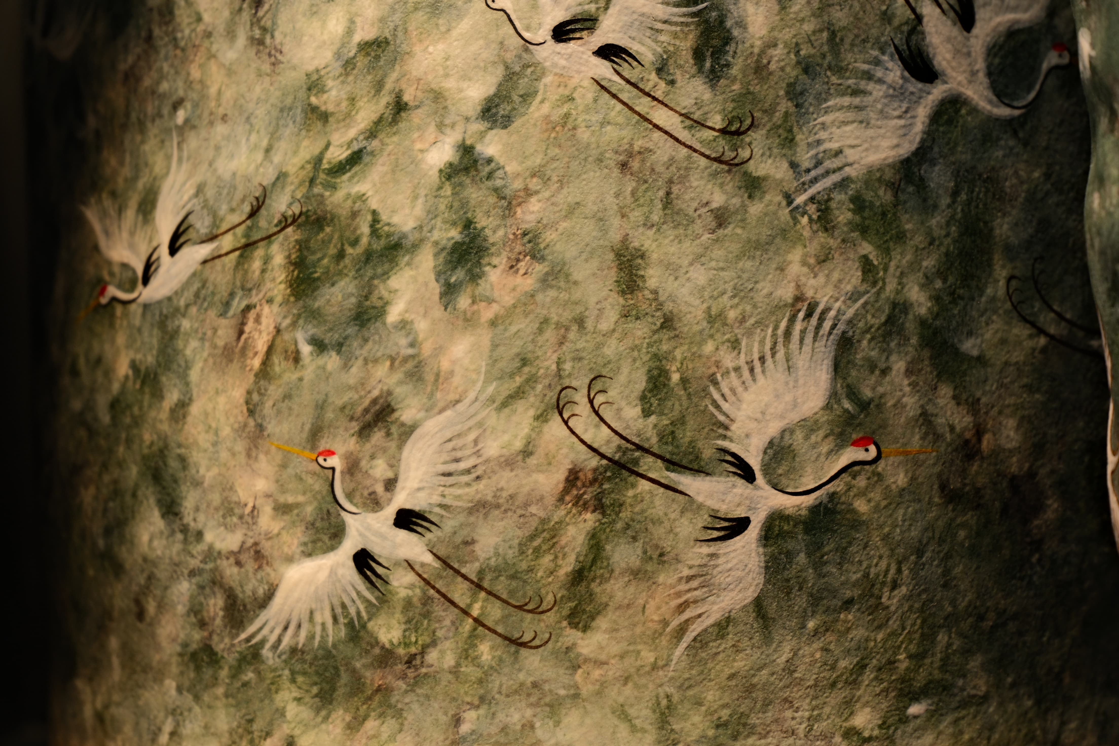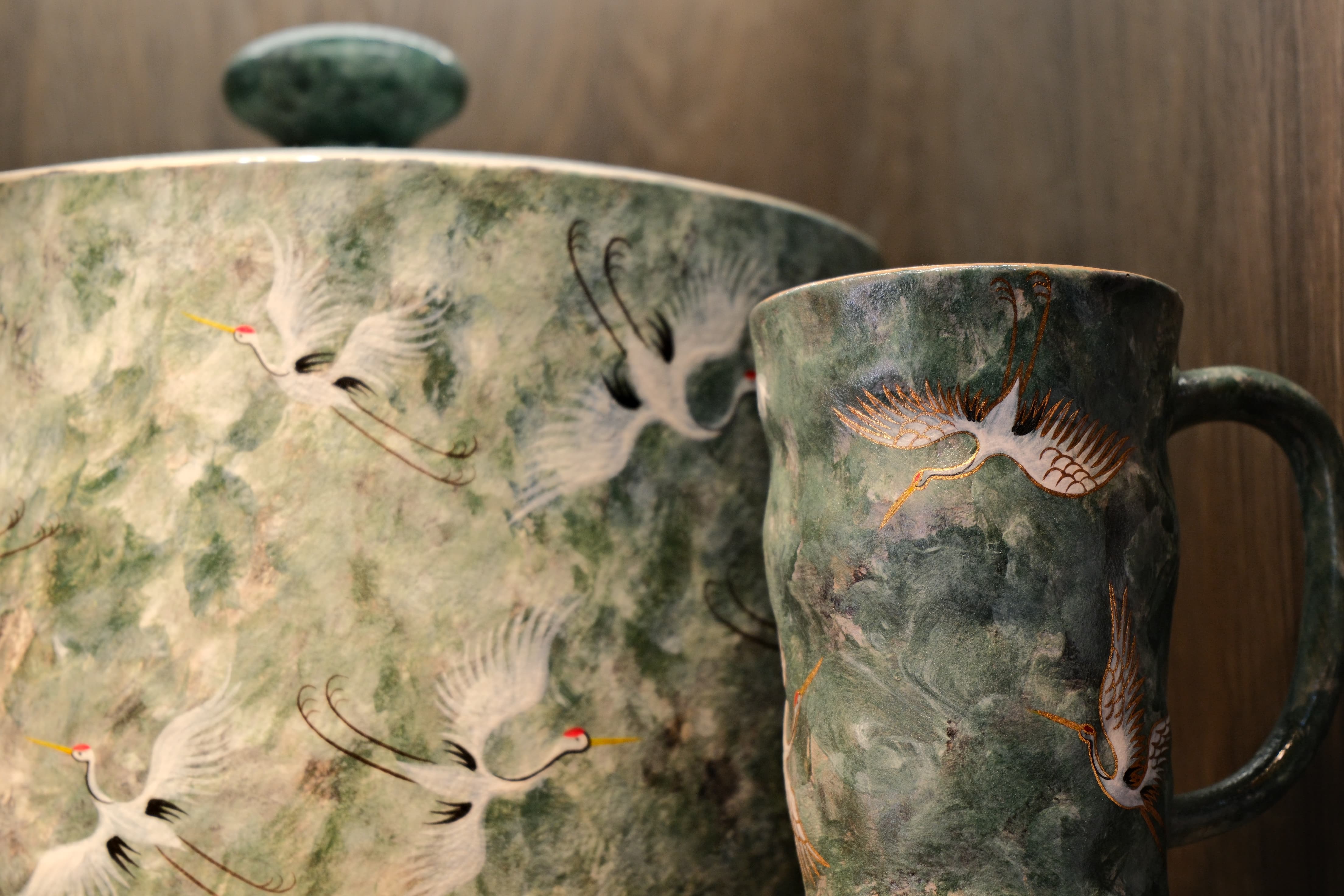 綠色彩繪仙鶴茶葉罐